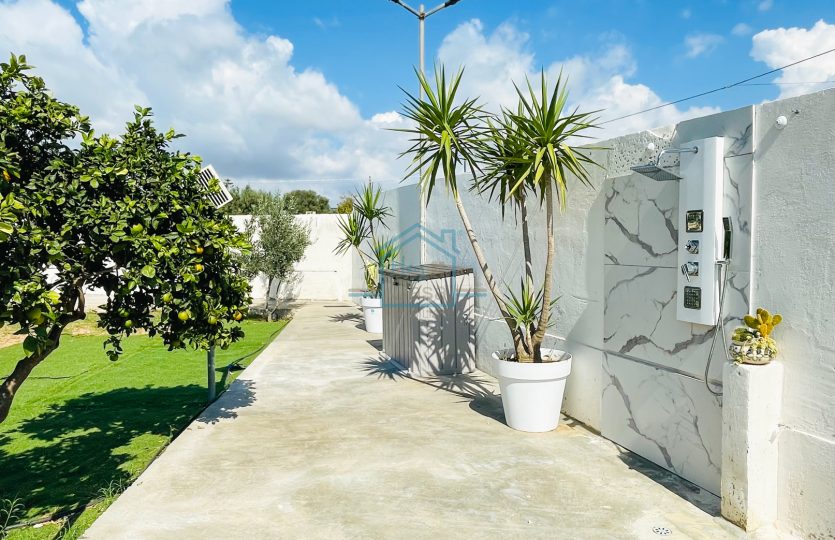 All’esterno troviamo inoltre 2 accessi carrabili, alberi secolari, doccia idromassaggio, ampio parcheggio coperto al servizio di auto o camper, Terrazzo vista mare con accesso da scala esterna in muratura.
